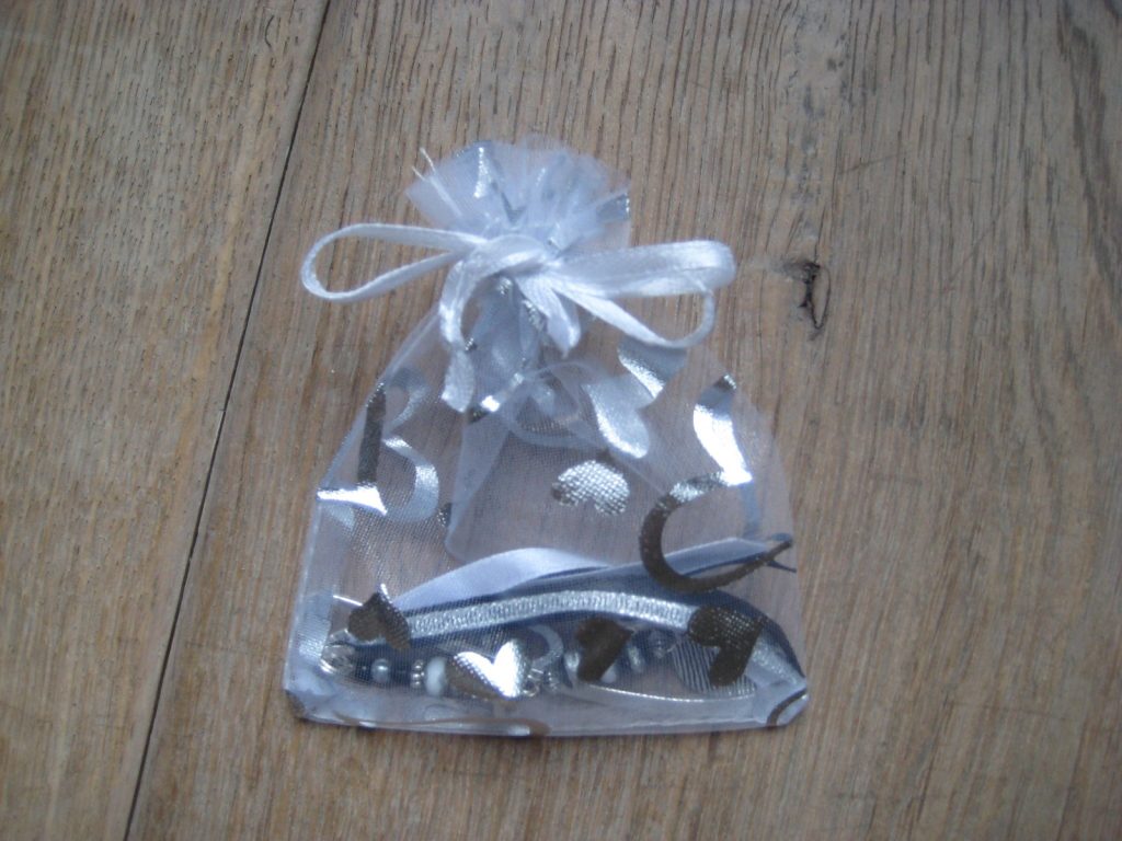 Sierlijke metalen boekenleggertjes met kraaltjes en lint.
