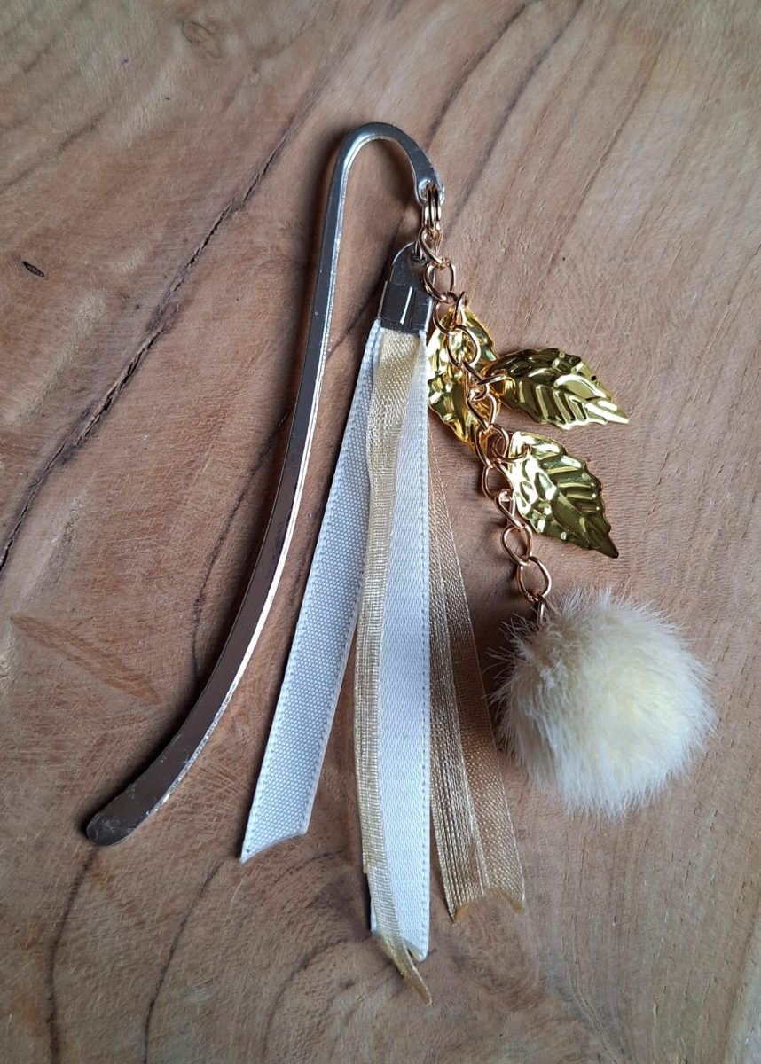 Sierlijke metalen boekenleggertjes met kraaltjes en lint.